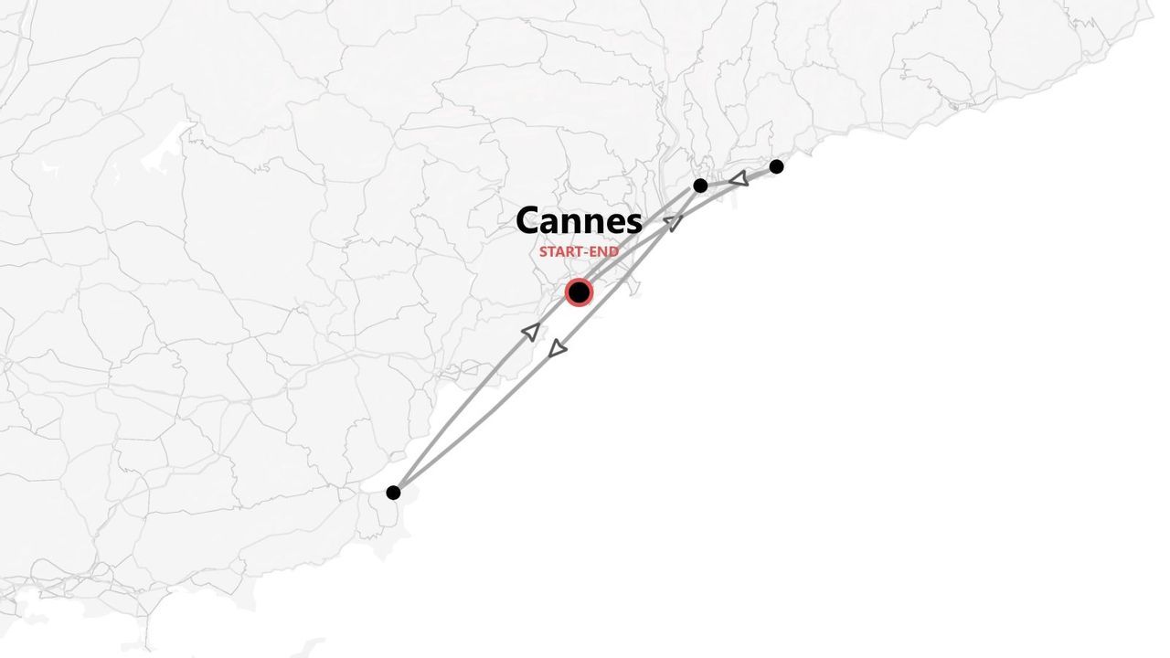 This journey begins at Cannes. On the first day, we meet at 17:00.
