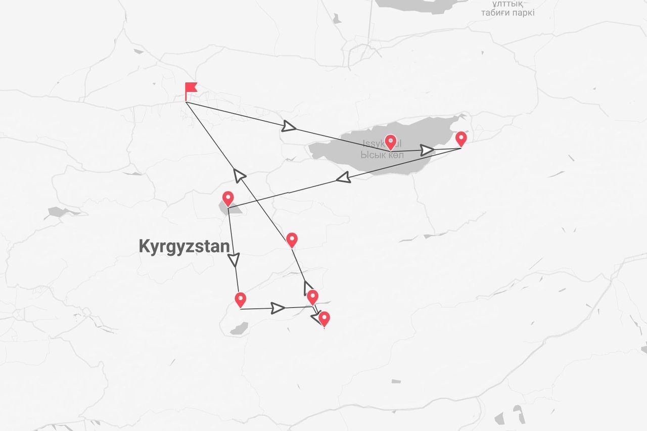 Our journey begins in Bishkek, where Russian influences in architecture quickly give way to the wild as we head towards Lake Issyk Kul. We explore Konorchek Canyon and Burana Tower before reaching our yurt for the night. The adventure continues with the surreal Skazka Canyon, Jeti Oguz Valley, and a thrilling eagle hunting demonstration. At Lake Song Kul, a horseback expedition awaits. We then visit the historic Tash Rabat Caravanserai and venture to the remote Ak Sai Valley at the China border, marveling at the Kakshaal Too range. One last trek through Köl Suu Lake's breathtaking landscapes completes our journey before we return to Bishkek for a final night together. This epic adventure will make returning home a challenge, but that’s the essence of a WeRoad expedition.