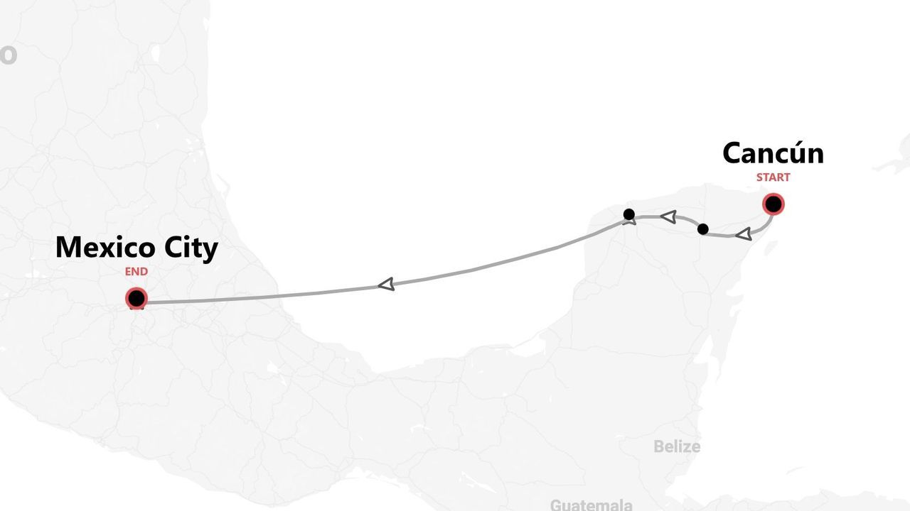 This trip starts in Cancún. On the first day, we’ll meet at 18:00