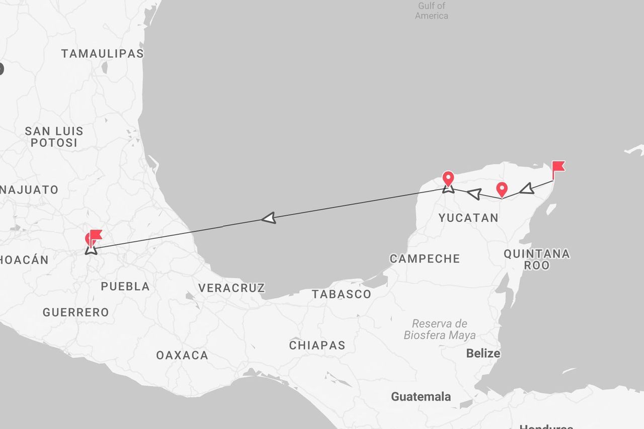 This trip starts at Cancún and ends at Mexico City. On the first day of the trip we meet at 18:00, on the last day you can depart at 09:00.