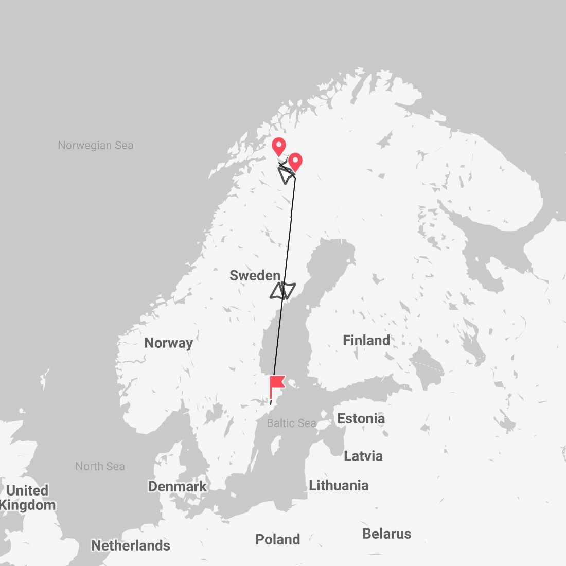 Included: overnight at Aurora Camp Kurravaara or similar, car rental