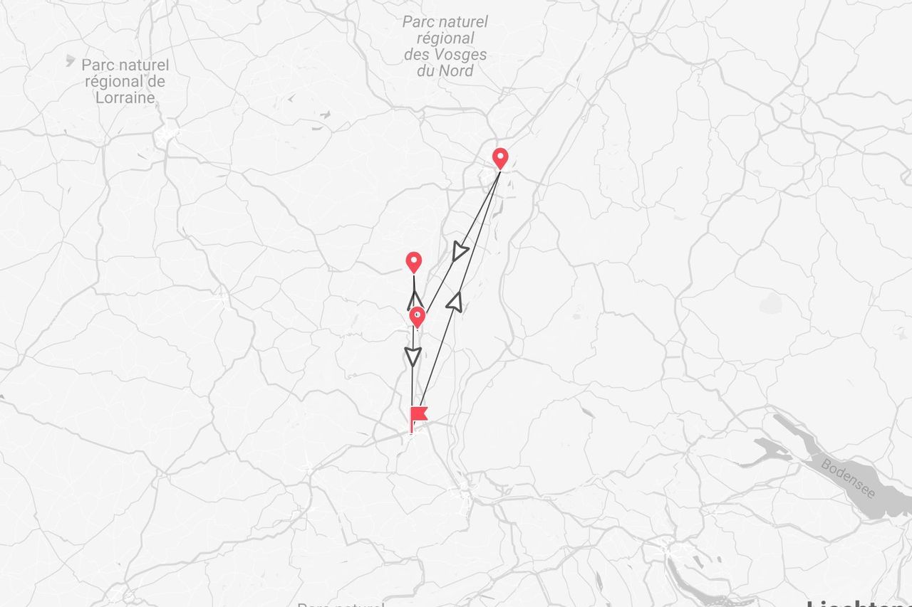 The starting and ending point of the trip is Basel, but we will stay in Mulhouse (or nearby), a strategically located town in the heart of Alsace for the various journeys we will make during our trip.