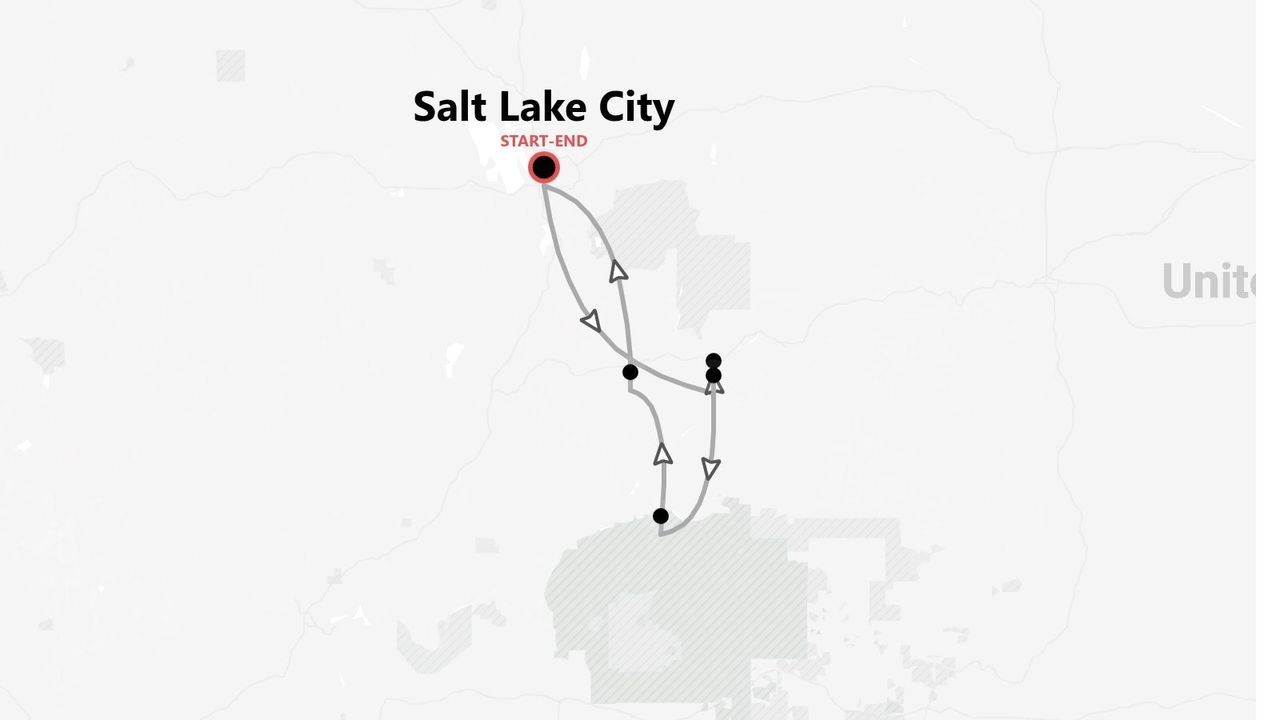 This trip starts in Salt Lake City. On the first day, we’ll meet at 14:00.